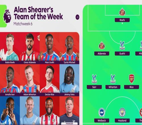 雷速体育9月30日报道宣称 英超名宿阿兰·希勒为英超官方评选了第6轮比赛的最佳阵容。帮助水晶宫战胜利物浦的中场球员亚当·沃顿得到希勒极高评价,格拉斯纳成为周最佳主帅,哈